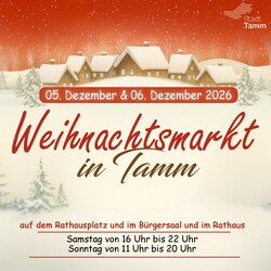 Am zweiten Adventswochenende öffnet der Tammer Weihnachtsmarkt wieder seine Pforten und lädt Besucherinnen und Besucher zum Verweilen, Genießen und Einstimmen auf die Weihnachtszeit ein. Der Weihnachtsmarkt findet am Samstag, 5. Dezember, von 16:00 bis 22:00 Uhr sowie am Sonntag, 6. Dezember, von 11:00 bis 20:00 Uhr auf dem Rathausplatz und im Bürgersaal statt.